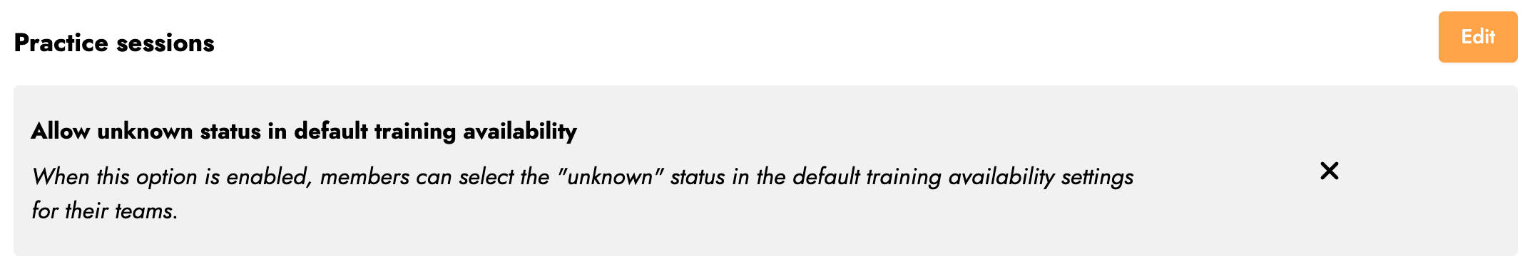 The first part concerns the default availability options for training sessions available to team members. By default, members can only select Presence or Absence. By changing and enabling this setting, members will also have the option to choose Unknown status.