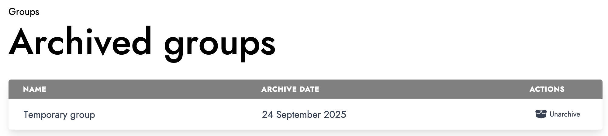 By clicking the "Archived groups" button at the top of the group list, you can access the list of archived groups. You can also restore them if needed.