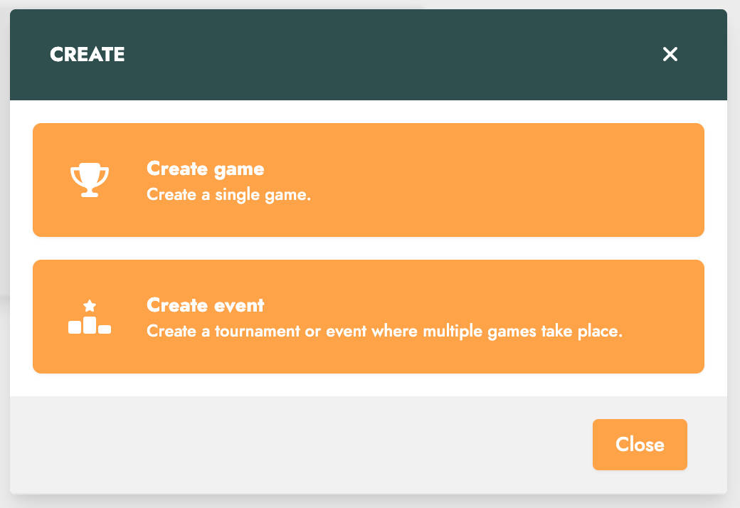 First, by clicking the "Create" button on the games page, you can now create an event in addition to a game.